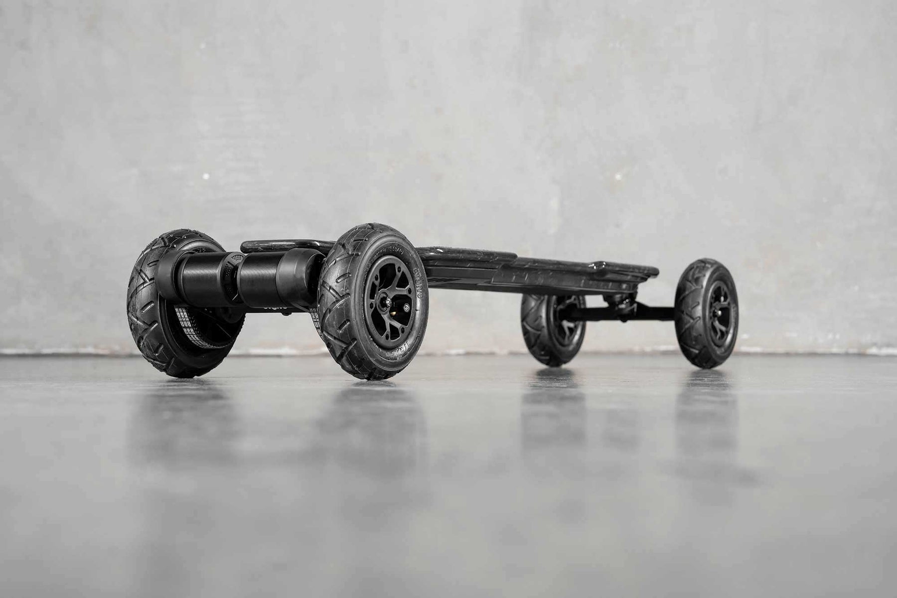 Engineered to reach speeds up to 50 km/h and boasting a range of 50 km, the Evolve Diablo Carbon All Terrain electric skateboard is built to handle diverse terrains effortlessly. Its forged carbon fibre deck ensures robustness and agility, providing a stable yet dynamic riding experience for adventurers seeking new thrills in any terrain. Equipped with Evolve's Super Carve 2 Trucks, the Diablo Carbon All-Terrain offers enhanced stability and precise carving capabilities, delivering a ride that replicates the endless surf wave or limitless snowboard run.