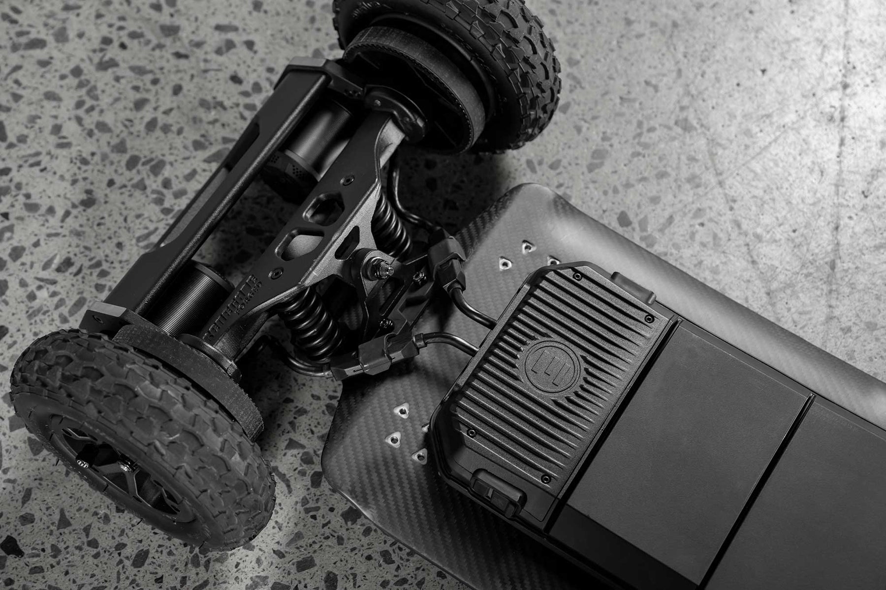 The Renegade Diablo's deck, made from solid carbon fibre, showcases Evolve's innovative design, combining robust strength with perfect flexibility for extreme riders. Equipped with new suspension trucks called “Renegade Forged,” these trucks are designed and built for maximum strength. Built-in binding hole inserts and Evolve Bindings (sold separately) transform this board into an off-road beast, ready to conquer new limits.